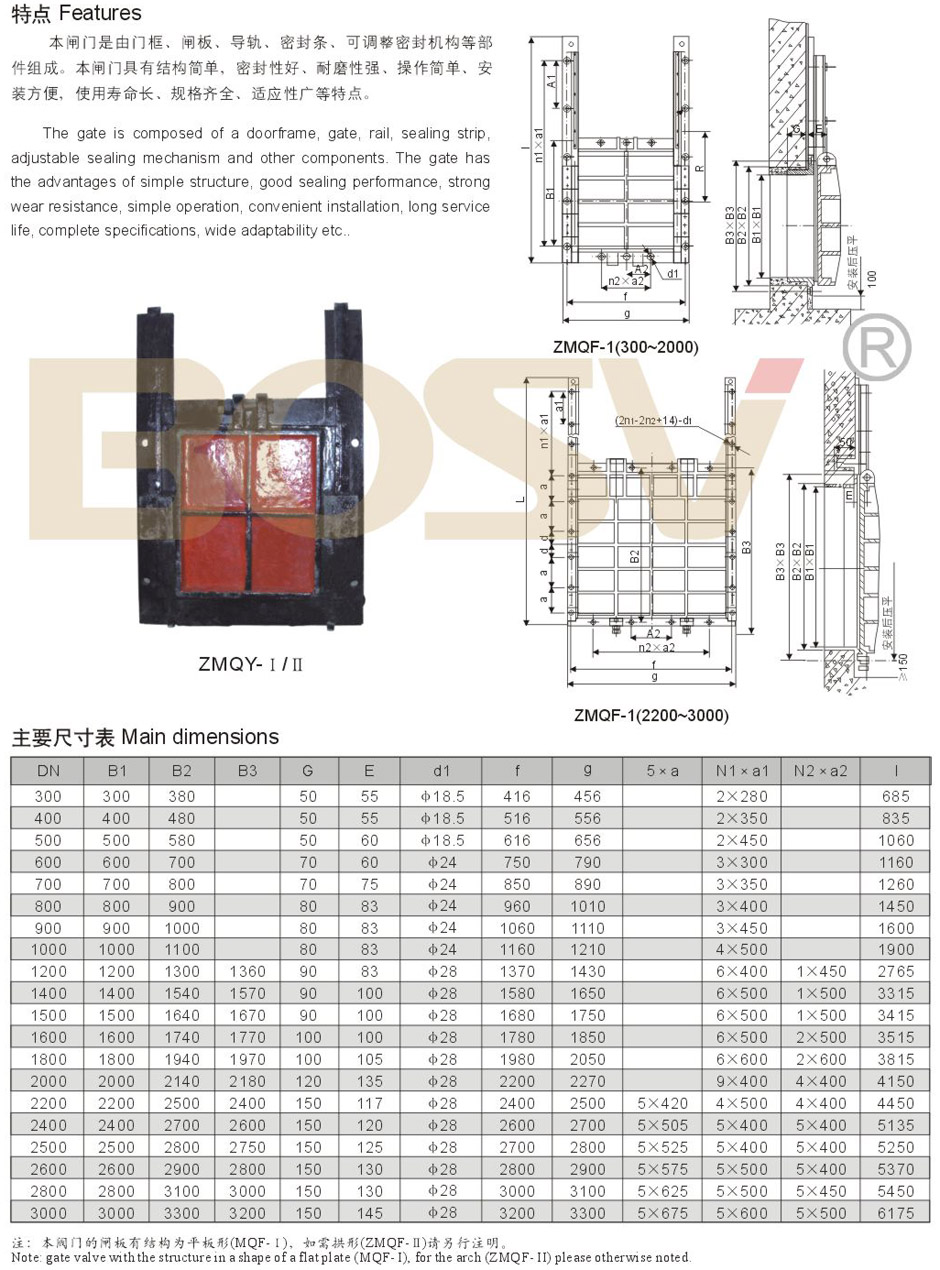 墙式镶铜铸铁方闸门