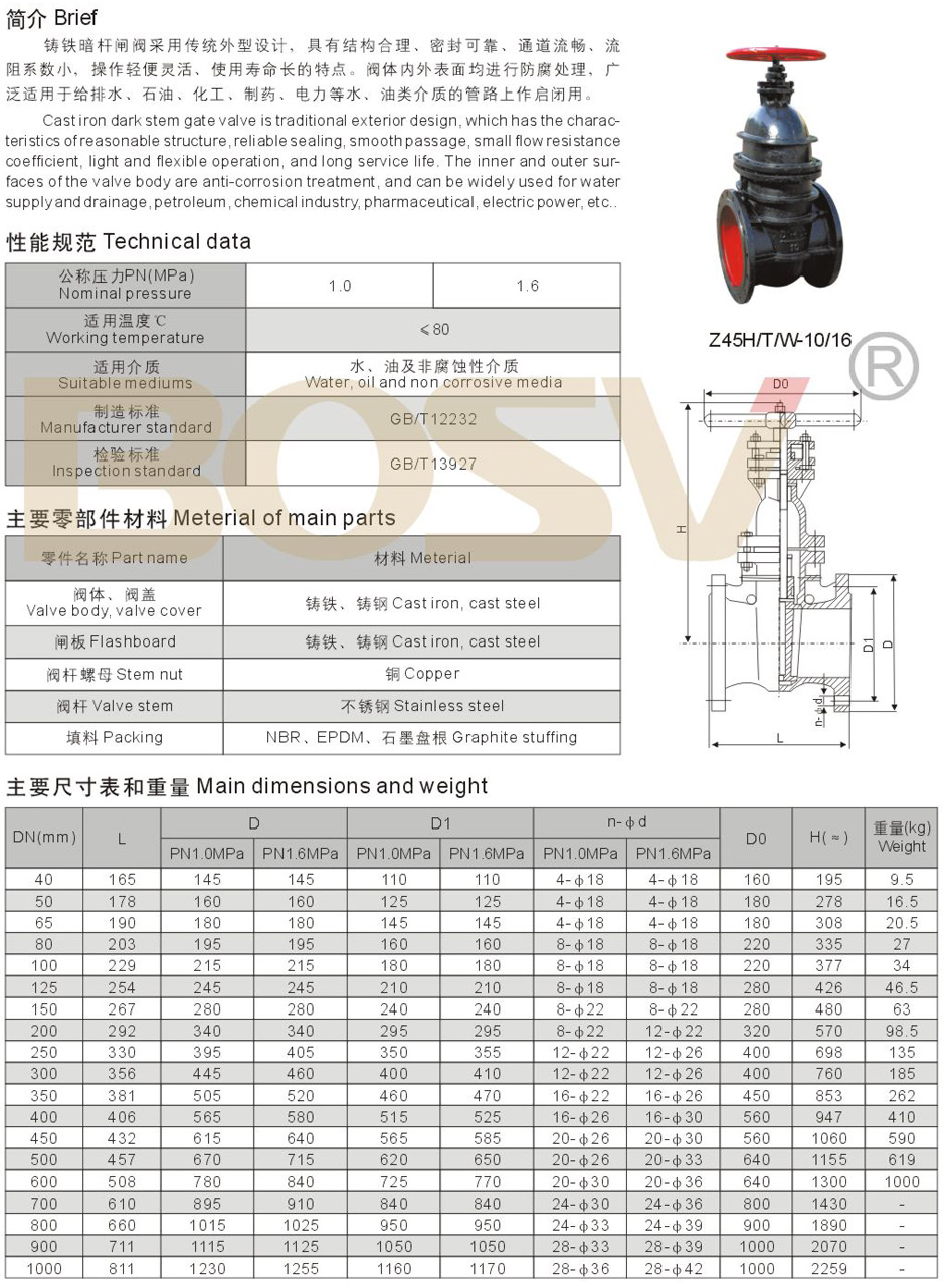 铸铁暗杆闸阀