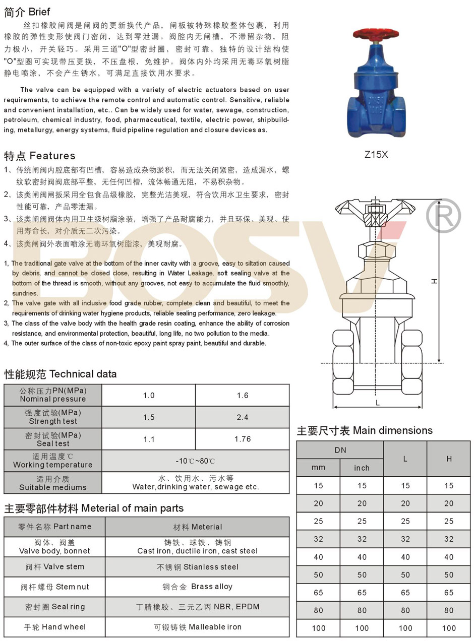 丝扣橡胶闸阀