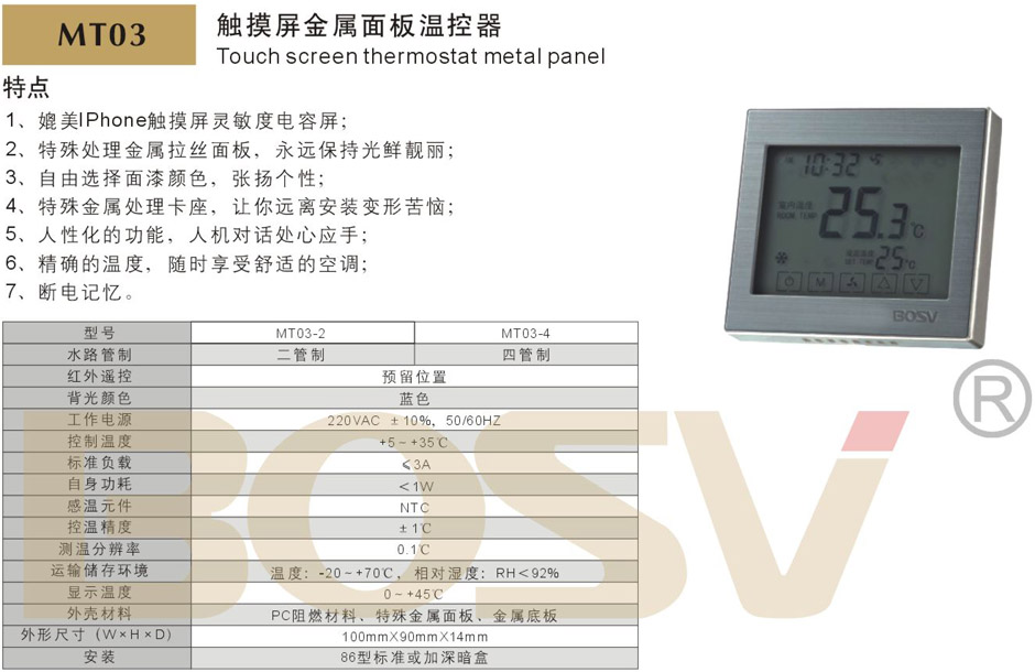 触摸屏金属面板温控器